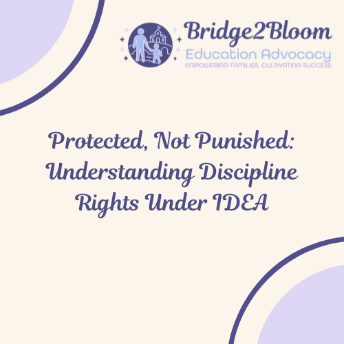 This course is designed to help parents and caregivers navigate what happens when a child with an IEP or 504 faces school discipline. In this course, you’ll learn: Discipline actions in public schools Your rights under IDEA and Section 504 for suspensions over 10 days What’s a Manifestation Determination Review (MDR) is and how to prepare Proactive Supports: The role of a Functional Behavior Assessments (FBA) and Behavior Intervention Plans (BIP)
